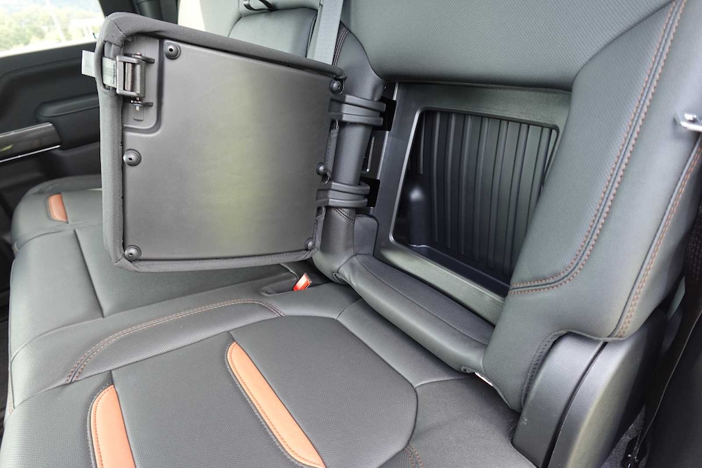 - Allows driver to see inside the cargo bed on the infotainment display to help with 5th wheel or gooseneck hitching and to check cargo
