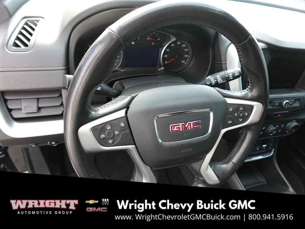 DRIVER CONVENIENCE PACKAGE includes (BTV) Remote Start, (CJ2) dual-zone automatic climate control, (KA1) driver and front passenger heated seats, (AG1) 8-way power driver seat adjuster, (AL9) driver power lumbar control and (V2P) roof-mounted luggage rack side rails, DRIVER ALERT PACKAGE I includes (KSG) Adaptive Cruise Control - Camera, (UKC) Lane Change Alert with Side Blind Zone Alert, (UFG) Rear Cross Traffic Alert, (UD7) Rear Park Assist and (HS1) Safety Alert Seat Also includes (DWK) outside heated power-adjustable manual-folding body-color mirrors with LED turn signal indicators.), FLOOR LINER PACKAGE includes (RIA) front and rear row all-weather floor liners, LPO and (CAV) integrated cargo liner, LPO. AUDIO SYSTEM, 7" DIAGONAL GMC INFOTAINMENT SYSTEM includes multi-touch display, AM/FM stereo, includes Bluetooth® streaming audio for music and most phones; featuring Android Auto® and Apple CarPlay® capability for compatible phones (STD), ENGINE, 1.5L TURBO DOHC 4-CYLINDER, SIDI, VVT (170 hp [127.0 kW] @ 5600 rpm, 203 lb-ft of torque [275.0 N-m] @ 2000 - 4000 rpm) (STD), TRANSMISSION, 9-SPEED AUTOMATIC 9T45, ELECTRONICALLY-CONTROLLED WITH OVERDRIVE (STD). MP3 Player, Privacy Glass, Keyless Entry, Steering Wheel Controls, Alarm.