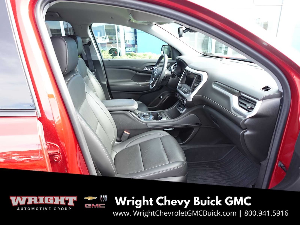 Leather Seats, Third Row Seat, Heated Driver Seat, Premium Sound System, iPod/MP3 Input, Onboard Communications System, Remote Engine Start, Dual Zone A/C, Lane Keeping Assist, Blind Spot Monitor. GMC SLT with Volcanic Red Tintcoat exterior and Jet Black interior features a V6 Cylinder Engine with 310 HP at 6600 RPM*.
