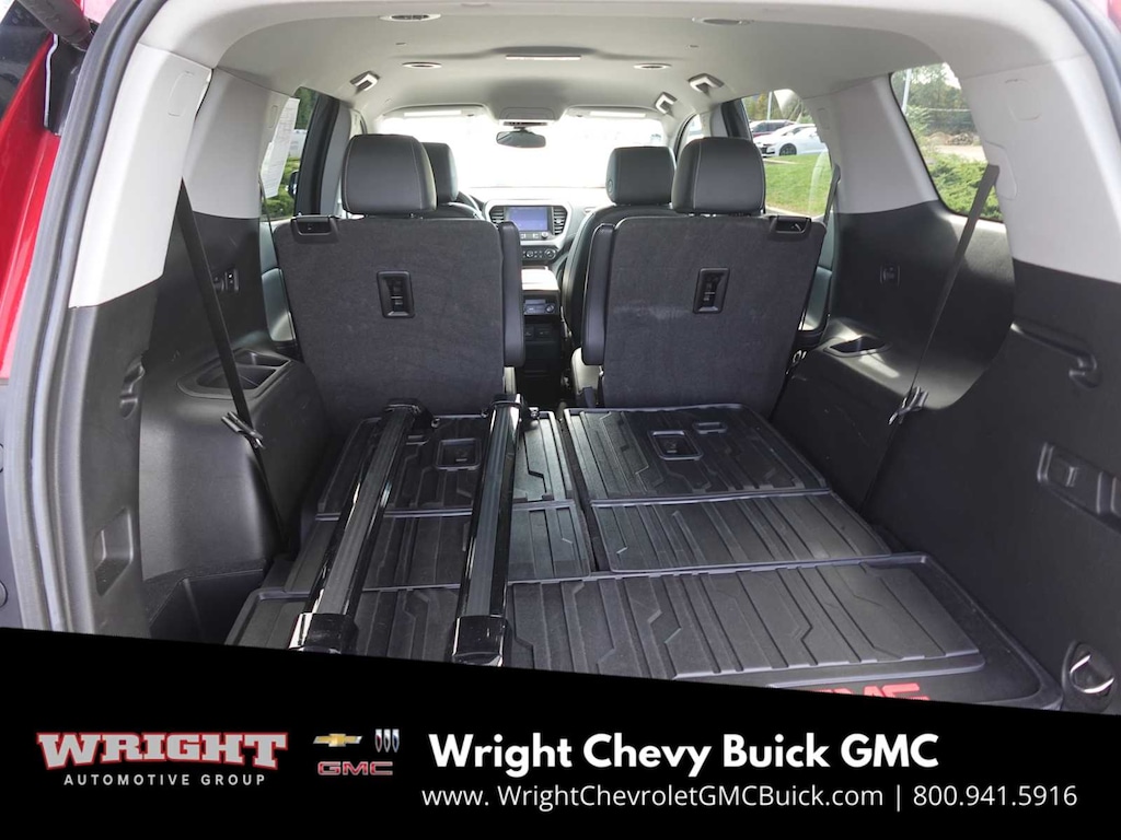 ELEVATION EDITION includes Black grille and exterior accents, (QGY) 20" aluminum wheels, Black center caps, (QNU) 20" all-season blackwall tires and (V59) Gloss Black roof rails, LPO, ADVENTURE PACKAGE includes (RIA) front and second row all-weather floor liner, LPO, (RIB) third row all-weather floor liner, LPO, (CAV) integrated cargo liner, LPO and (VQQ) roof rack cross rails, LPO, VOLCANIC RED TINTCOAT, ENGINE, 3.6L V6, SIDI, DOHC with Variable Valve Timing (VVT) (310 hp [231.1 kW] @ 6600 rpm, 271 lb-ft of torque [365.9 N-m]) @ 5000 rpm, LPO, FLOOR LINER PACKAGE: includes (RIA) front and second row all-weather floor liner, LPO, (RIB) third row all-weather floor liner, LPO and (CAV) integrated cargo liner, LPO, EMBLEMS, FRONT AND REAR WITH BLACK GMC LETTERING, LPO, KEYLESS ENTRY KEYPAD with vertical design, 5-digit programmable keypad located on driver-side B-pillar, 8" DIAGONAL GMC INFOTAINMENT SYSTEM WITH NAVIGATION includes multi-touch display, AM/FM/SiriusXM stereo, Bluetooth® streaming audio for music and most phones, Android Auto® and Apple CarPlay® capability for compatible phones, advanced voice recognition, in-vehicle apps, personalized profiles for infotainment and vehicle settings (STD), TRANSMISSION, 9-SPEED AUTOMATIC, ELECTRONICALLY-CONTROLLED with 3.6L V6 engine, LPO, ROOF RACK CROSS RAILS. Privacy Glass, Remote Trunk Release, Steering Wheel Controls, Child Safety Locks, Electronic Stability Control.
